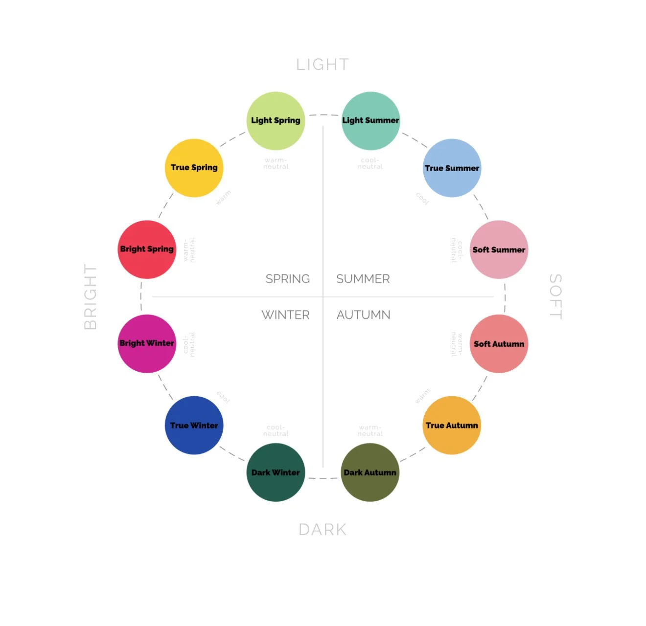 Traditional color analysis focused on four true seasons: Winter, Spring, Summer, Autumn. People were categorized as either a cool season: Winter and Summer (blue undertones) or warm season: Autumn and Spring (yellow undertones).